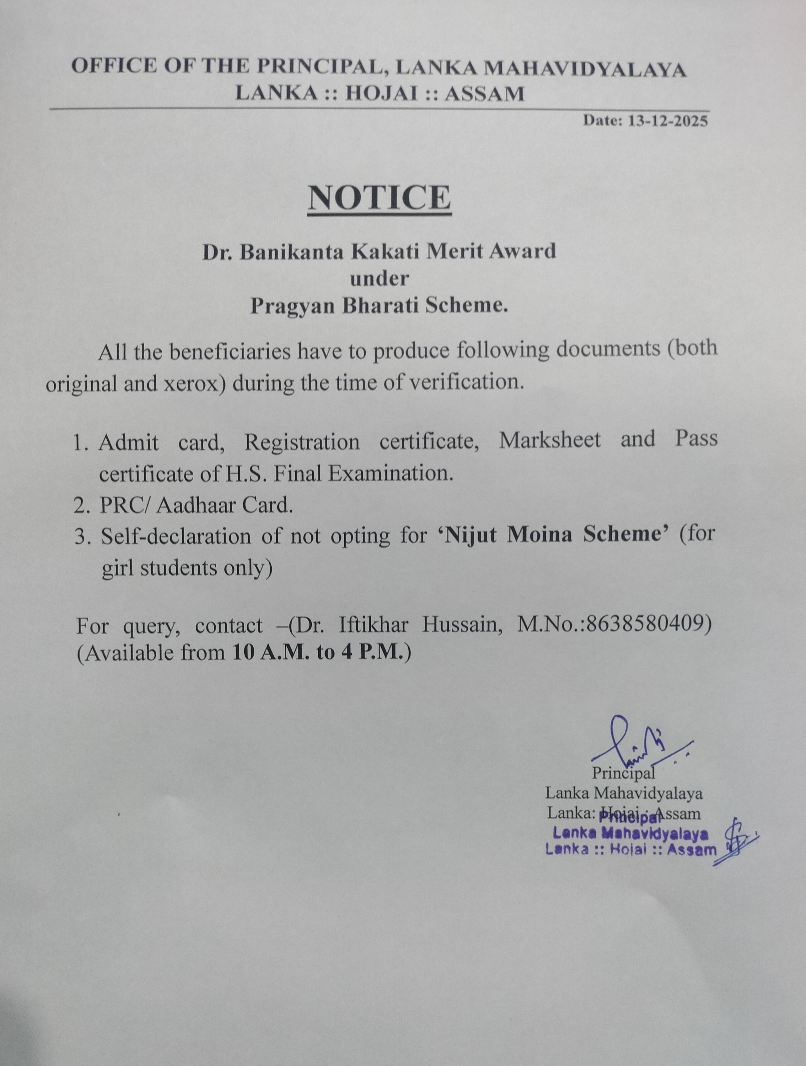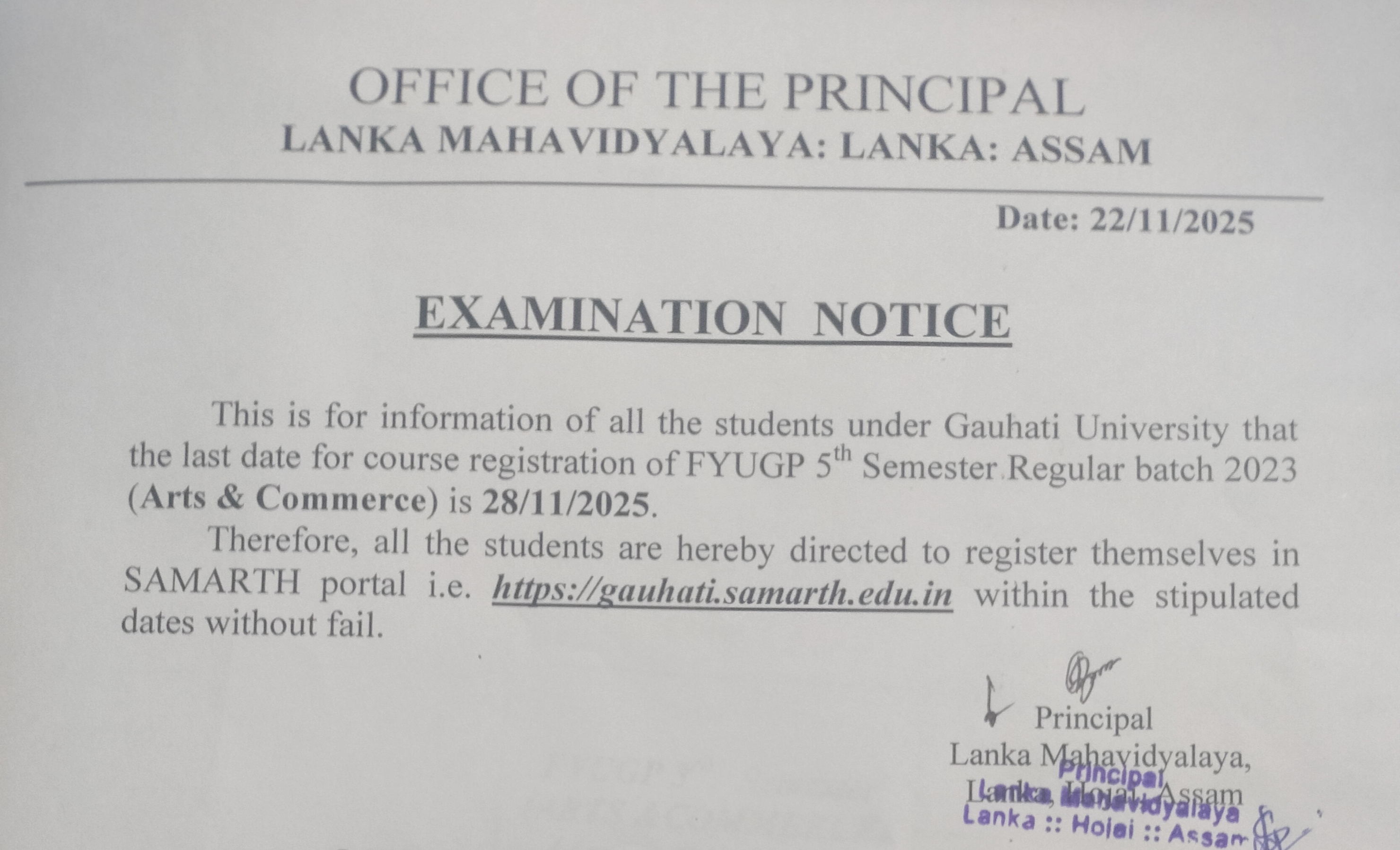 "নামভৰ্তি সজাগতা কাৰ্যসূচী - ২০২৫" KKHSOU Lanka Mahavidyalaya Centre